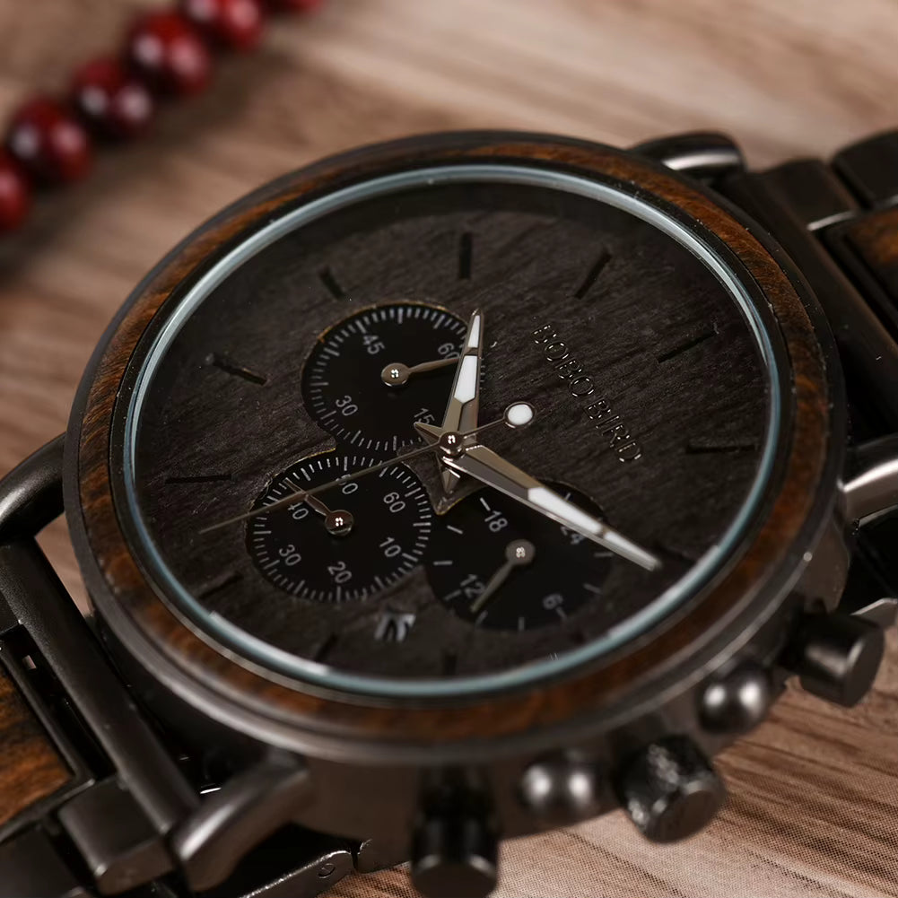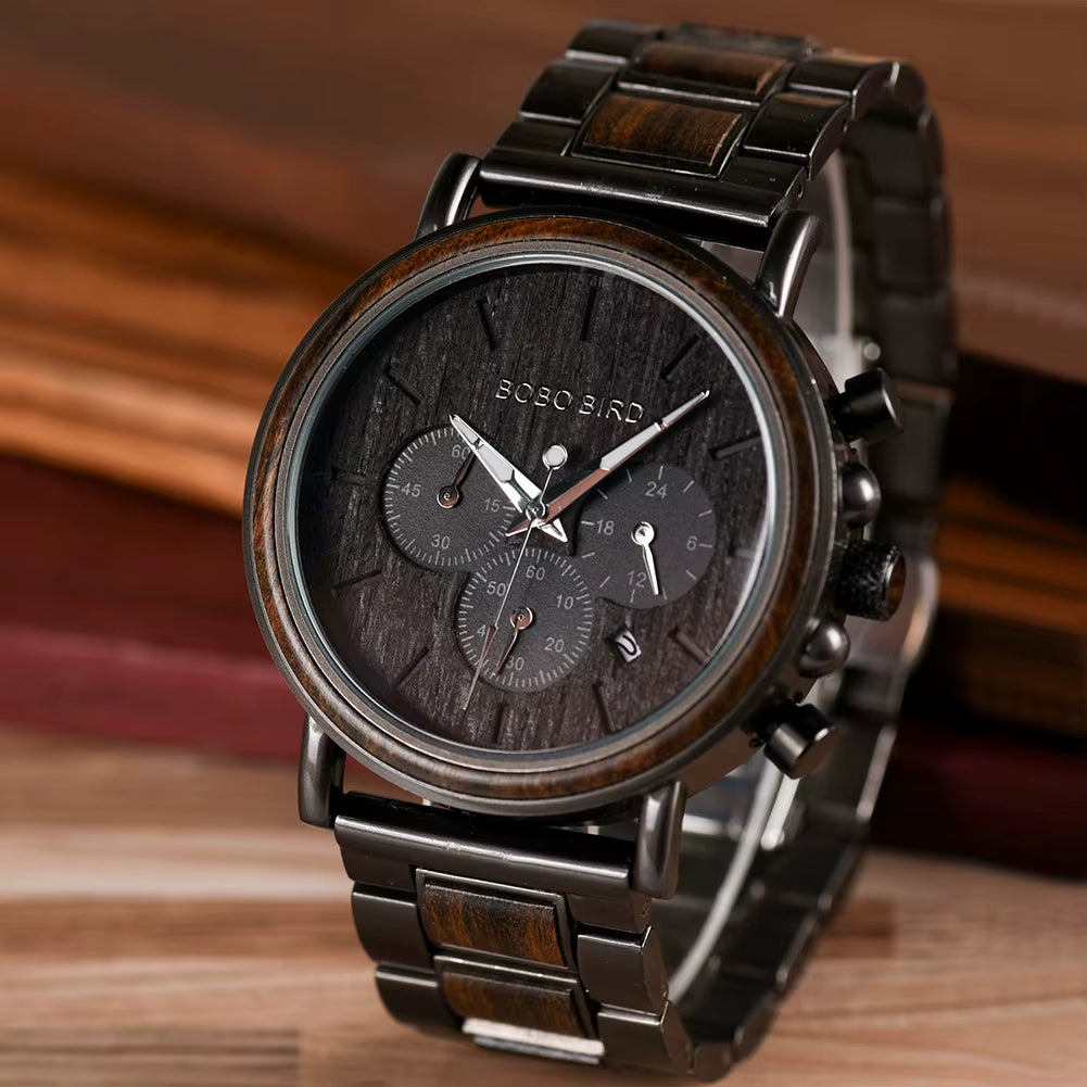 Odkryj zegarek, który łączy w sobie siłę natury i nowoczesną elegancję. Bobo Bird Dark Q26-1 to ręcznie wykonany czasomierz dla mężczyzny, który ceni sobie unikalny styl i bezkompromisową jakość. Niezwykłe połączenie egzotycznego drewna i chłodnej stali nierdzewnej sprawia, że ten model natychmiast przyciąga spojrzenia i podkreśla indywidualny charakter właściciela.